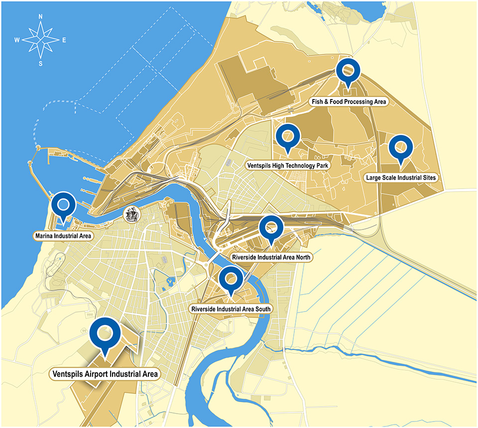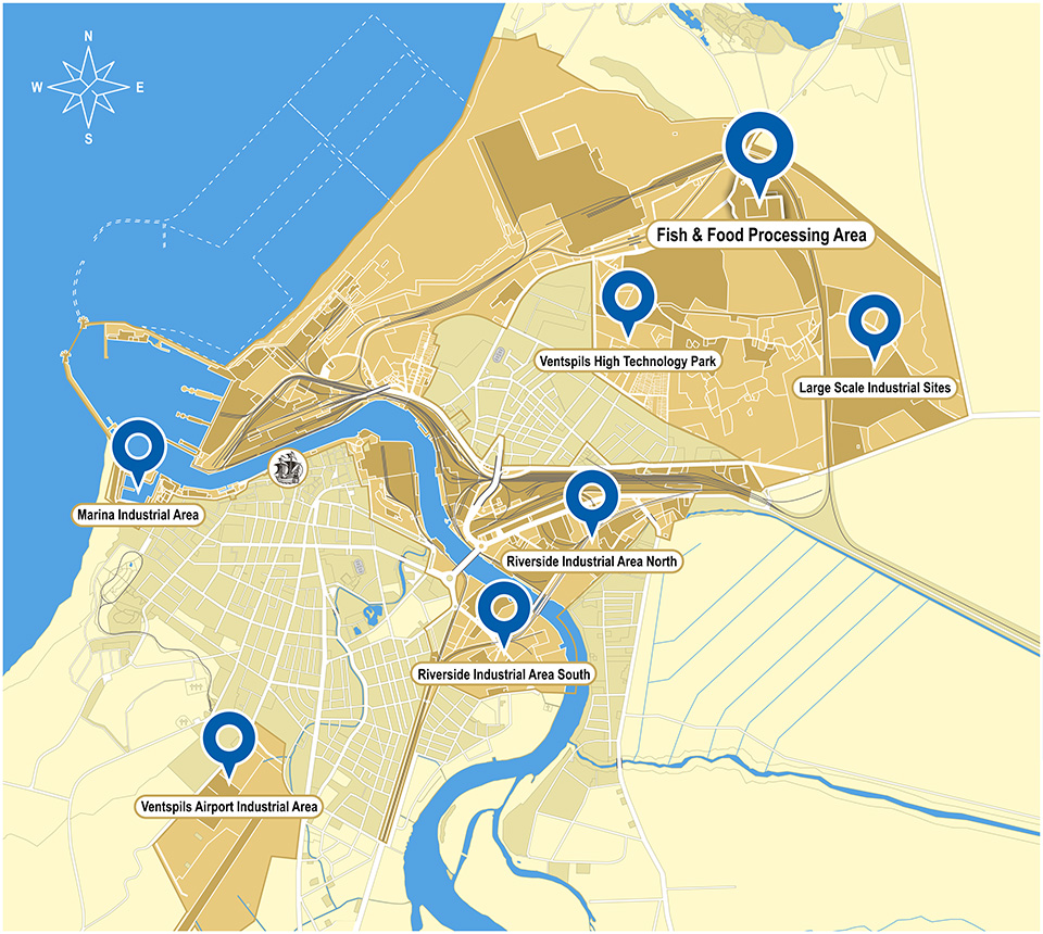 Development of companies producing various products is possible in the Large Scale Industrial Sites. These sites are located in the North-Eastern part of the city, in 20-minute drive from the Port of Ventspils and ~ 2-hour drive from the capital Riga and Riga International Airport (RIX).
