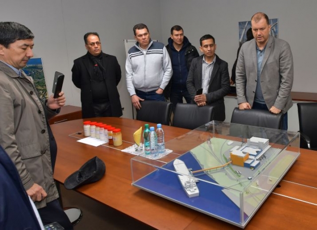 Centrālāzijas valstu pārstāvji Ventspilī apmeklēja arī dažādu lejamkravu pārkraušanas termināli Baltic Juice Terminal. Tas pieder kompānijai SIA Overseas Estates, un vairāk par termināli viesiem pastāstīja izņēmuma pārstāvis Ģirts Fišers (attēlā pirmais no labās).