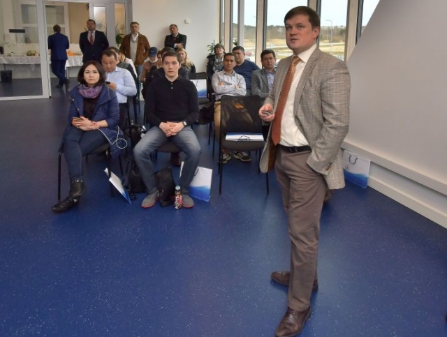 izītes iesākumā delegācija viesojās Ventspils Augsto tehnoloģiju parkā, kur par brīvostas un termināļu piedāvātajām iespējām un priekšrocībām pastāstīja Ventspils brīvostas pārvaldnieka vietnieks un pārvaldes Mārketinga un attīstības nodaļas vadītājs Igors Udodovs.