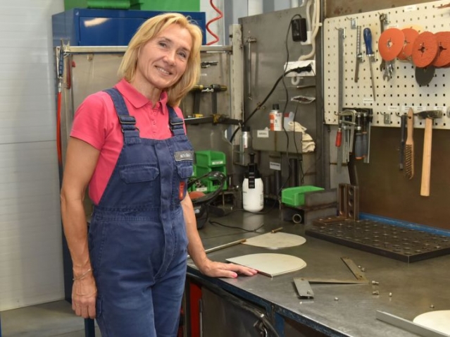 Ineta Cērpa uzņēmumā Bucher Municipal apguva metinātājas profesiju un šajā rūpnīcā strādā jau piecus gadus.