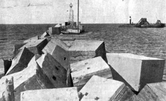 Dienvidu mols aptuveni 1930. gados. Tad mola virsmu noklāj ar betona bluķiem.