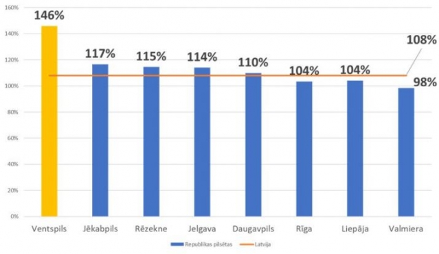 Saskaņā ar Centrālās statistikas pārvaldes sniegto informāciju aizvadītajā gadā, salīdzinot ar 2017. gadu, Ventspilī strādājošie rūpniecības uzņēmumi sasnieguši 46% pieaugumu rūpniecības produkcijas izlaidē. Turklāt šis pieaugums bijis arī par 38% lielāks nekā vidēji Latvijā (8%). Ar pluszīmi atzīmējami arī citi būtiski rādītāji. Piemēram, pieaugt turpina uzņēmumu apgrozījums, kas pagājušajā gadā bija 252 miljoni eiro, bet vēl pirms gada – 177 miljoni. Neapšaubāmi būtiski ir ne tikai daudz saražot, bet arī atrast savai produkcijai noieta tirgu, bet Ventspils uzņēmumi arvien pārliecinošāk iekaro ārvalstu tirgus, kuros ir arī augstāka maksātspēja. Pagājušajā gadā pāri robežai aizceļoja 86% saražotā jeb prece 217 miljonu eiro vērtībā, kas arī ir absolūti labākais rādītājs kopš 2002. gada, kad Ventspilī tika uzsākta industrializācijas programmas realizēšana.