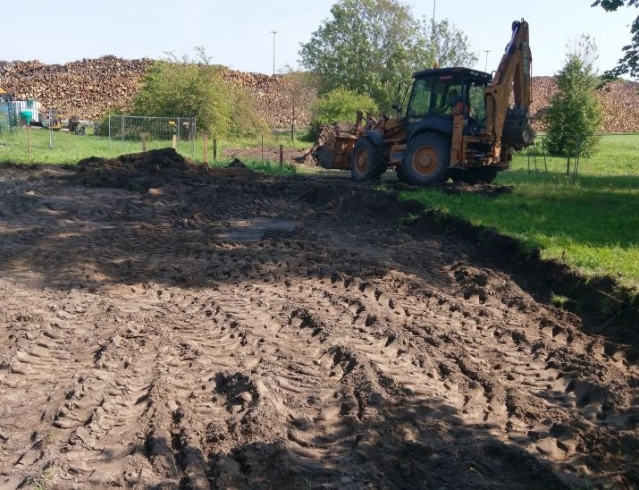 Vēl pagājušā gada augustā jaunās administratīvās ēkas vietā bija pļava. 29. augustā būvnieki sāka norakt augsnes virskārtu.