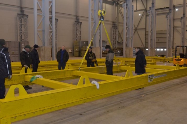 Ražotnē montē jaunas un regulējamas traversas moduļu pacelšanai.