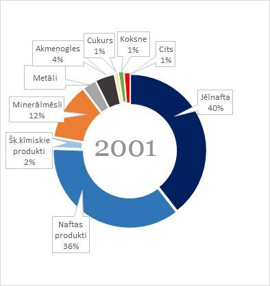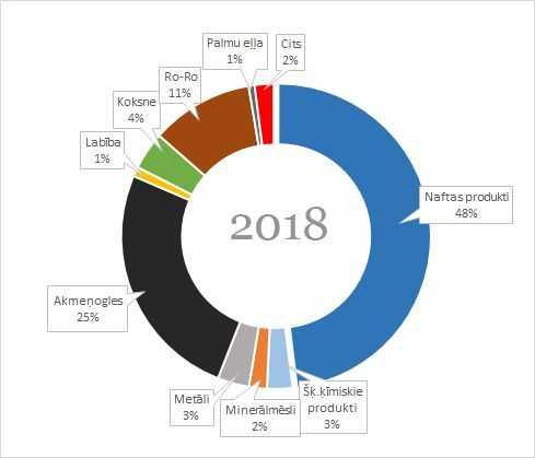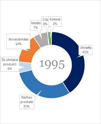 Kravu struktūra Ventspils brīvostā 1995. gadā, 2001. gadā un 2018. gadā