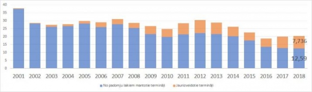 Jaunizveidoto termināļu īpatsvars kopējā kravu apjomā (milj. tonnas)