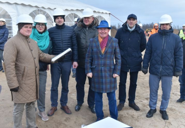 На торжественном мероприятии замурования в фундамент строящегося здания капсулы с посланием – руководство Вентспилсской городской думы, представители Управления ВСП, ООО Ultraplast EU, строительной организации Остас целтниекс.