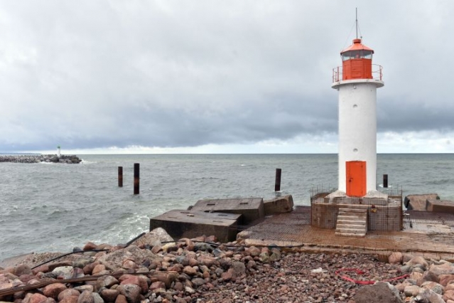 И всё же с наступлением осени помехой для строителей становится неустойчивая погода и штормы. Для гидростроительных работ есть ограничения по силе ветра и высоте волны, – подтверждает Харченков. Он говорит, что самая большая забота сейчас – завершить в этом году монтаж бетонных массивов у головы мола, так как плавкран после 1 ноября ждут в Клайпеде. Для швартовки плавкрана вблизи мола в море погружены швартовые трубы.