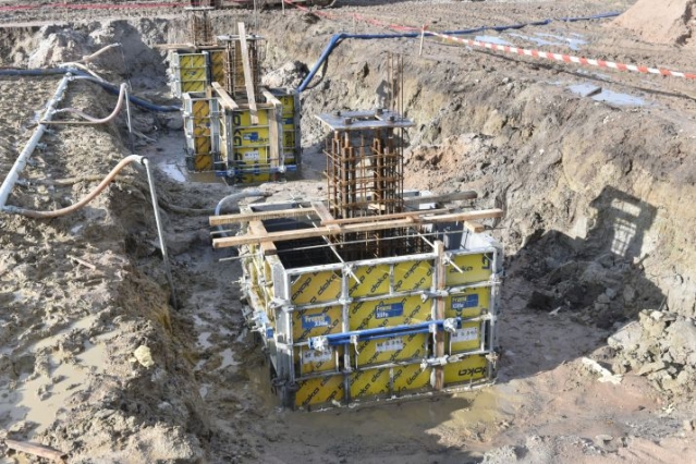 На стройплощадке по ул. Ганибу, 103 ведётся укладка фундамента. Здесь появится производственное здание площадью 4 100 м2. Строительство началось в июне сего года и закончится во второй половине 2020-го. Несмотря на то, что Управление Вентспилсского свободного порта обычно строит здания под нужды конкретного арендатора, они достаточно универсальные, и их можно приспособить под разные производственные процессы. Таким же будет здание по ул. Ганибу, 103. Геология этого места немного лучше, чем в ВПВТ, поэтому средняя длина свай составляет десять метров. Сейчас над сваями по периметру здания укладываются 56 железобетонных ростверков, которые распределят вес здания между сваями. Следующими будут уложены цокольные балки, а после этого строение выйдет из земли, и возведение фундамента завершится. Это здание тоже строится при софинансировании ЕФРР. Общие затраты составляют 4,1 млн евро.