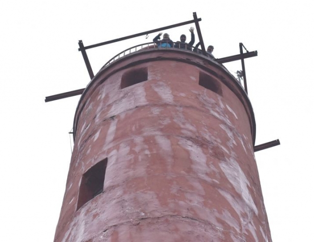 Mērojuši vairāk nekā simts pakāpienus augšup, apmeklētāji izbauda apkārtni no putna lidojuma.