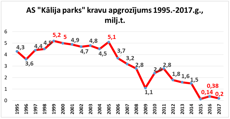 AS “Kālija parks” pieprasītās infrastruktūras izbūvē Ventspils brīvostas pārvalde ieguldīja vairāk nekā 15 miljonus eiro, bet AS “Kālija parks” kravu apjomu samazināja no 5,2 miljoniem tonnu 1999.gadā līdz 0,2 miljoniem tonnu 2017.gadā. Nav arī skaidrs, vai AS “Kālija parks” vispār plāno nākotnē nodarboties ar kravu pārkraušanu, jo informāciju par 2018.gadā plānoto kravu apjomu tas brīvostas pārvaldē aizvien nav iesniedzis.
