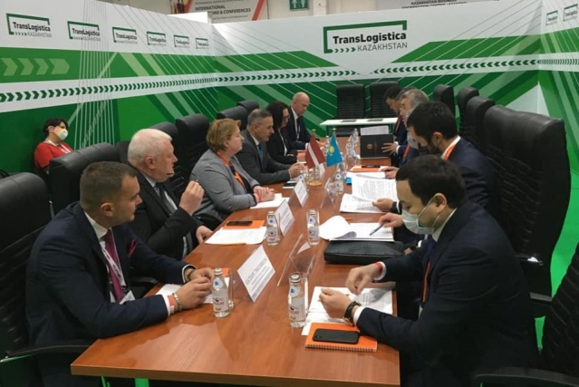 Izstādes ietvaros notika arī Latvijas – Kazahstānas transporta darba grupas sēde, kurā piedalījās arī Ventspils brīvostas pārvaldnieks Andris Purmalis.