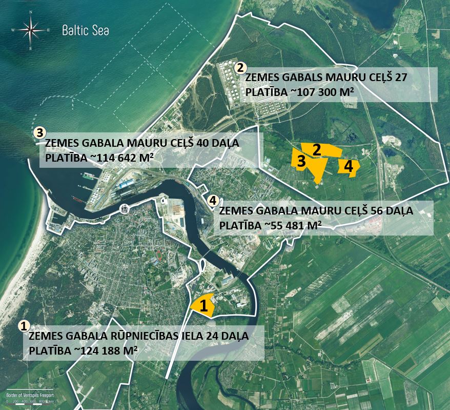 - zemes gabala Rūpniecības ielā 24, Ventspilī (kad. apz. 2700 015 0347) daļa 124 188 m2 platībā;