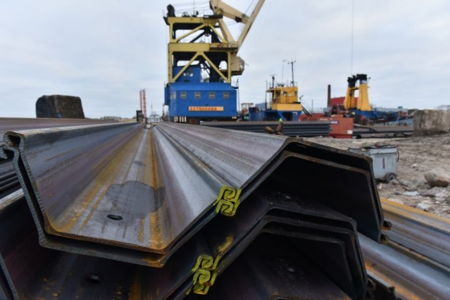 Лицевая стенка берегового укрепления будет установлена на расстоянии 4 метров от старых свай, а пространство между старым и новым заграждением будет засыпано грунтом, – рассказывает Андрей Харченков. Новое береговое укрепление протянется на 228 метров от 38-го причала до захода в Рыбную гавань. Сейчас на объекте занято много техники БМГС и от шести до восьми рабочих. Когда начнутся основные работы по погружению лицевого и анкерного шпунта, на объекте будут заняты до 25 человек из постоянных строительных бригад БМГС, базирующихся в Вентспилсе. «Будем работать круглосуточно, чтобы до Нового года забить шпунт и сформировать фасадную стенку нового берегового укрепления, – поясняет Харченков.