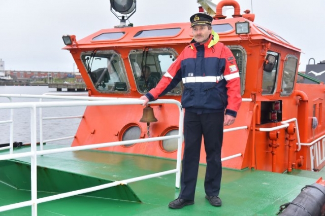 Лоцманы выходят в море на катере. Андрис Зятков поднялся на борт Кайи и готов встречать заходящее в порт судно.