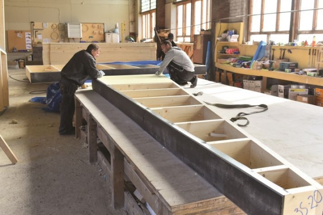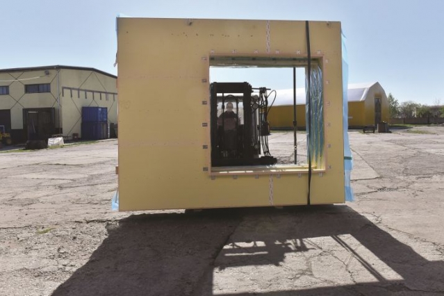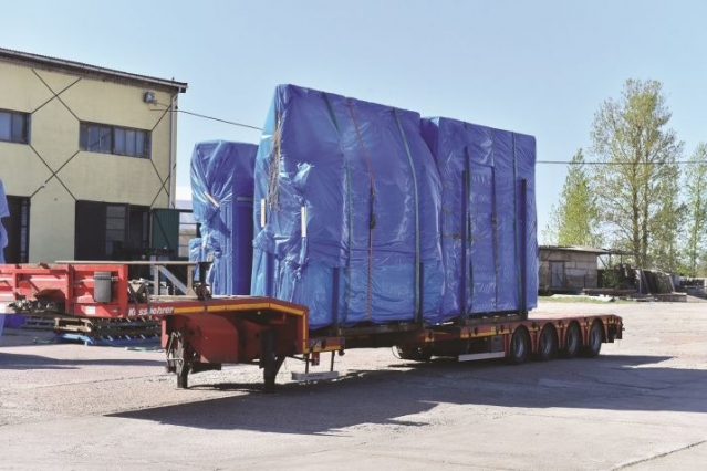 На территории предприятия по ул. Рупниецибас подготовлен первый груз со стенными и потолочными блоками, предназначенными для строительства школы в Стокгольме. Сейчас материалы уже дошли до берегов Швеции.