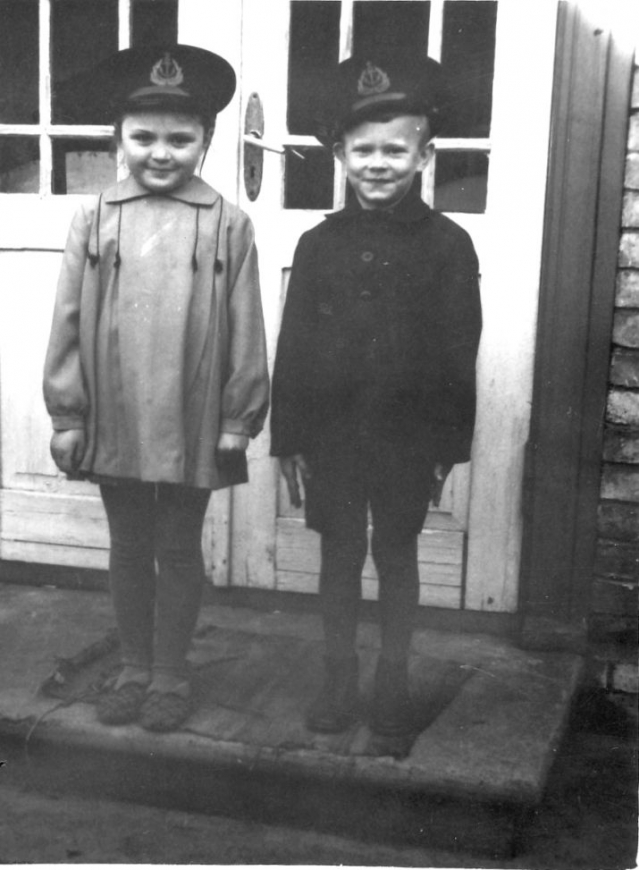 Младшие всегда фотографировались в отцовских фуражках. На фото: двоюродные брат и сестра Лилия и Вилис.