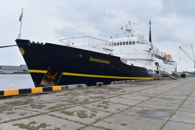 Небольшое круизное судно Serenissima зашло в Вентспилс вчера.